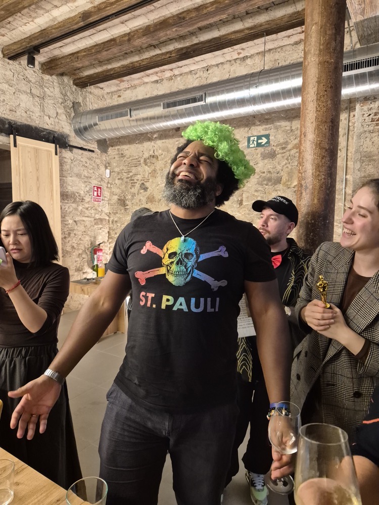 Tomas volunteered to be our judge (we needed one from each team). That was before he realised he'd have to wear a wig.