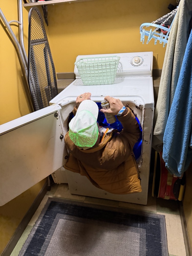 One of the iconic experiences at the House of Eternal Return is the washing machine portal. It wasn't easy to get in. (Thanks to Jane Harrison for taking these photos!)