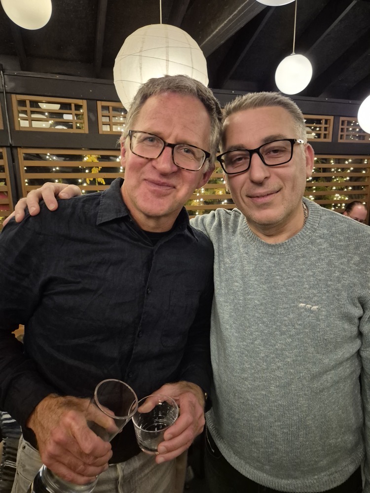On Thursday we had a light day, with a few unconference sessions before lunch. One of them was even held outside. He's a photo of Gareth and myself in deep concentration.