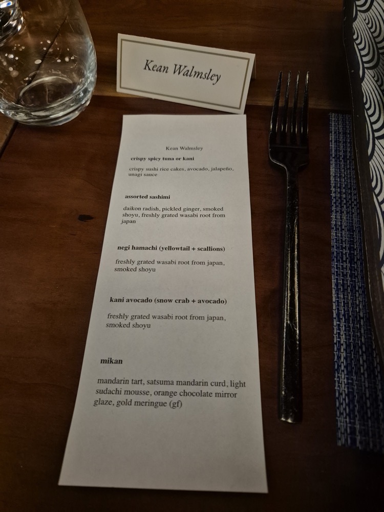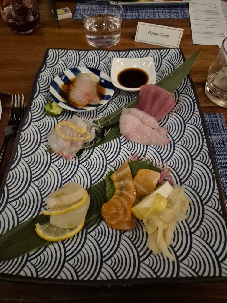 We'd chosen our dinner options in advance. I went heavy on the raw fish.