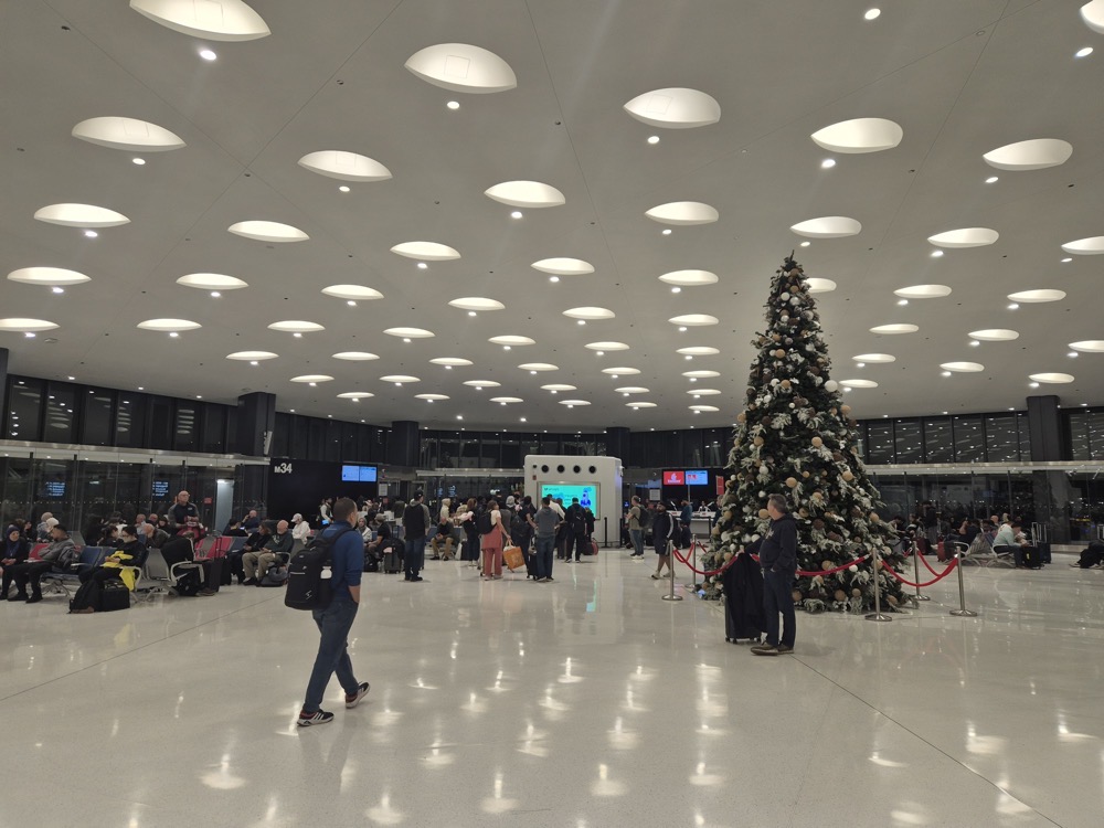 I had quite a walk at O'Hare to get to Terminal 5, which seems very new. It seems there's a way to change terminals without going through security, but I didn't find it. Despite having to pass security - with a bit of a hold-up due to their use of sniffer dogs - I still had time to sit down for a salad before boarding.