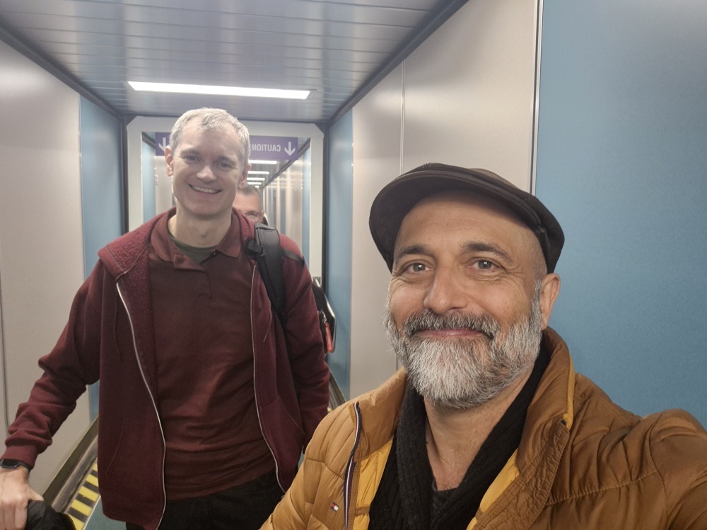 Nigel and I boarded together.Waiting to board with Nigel